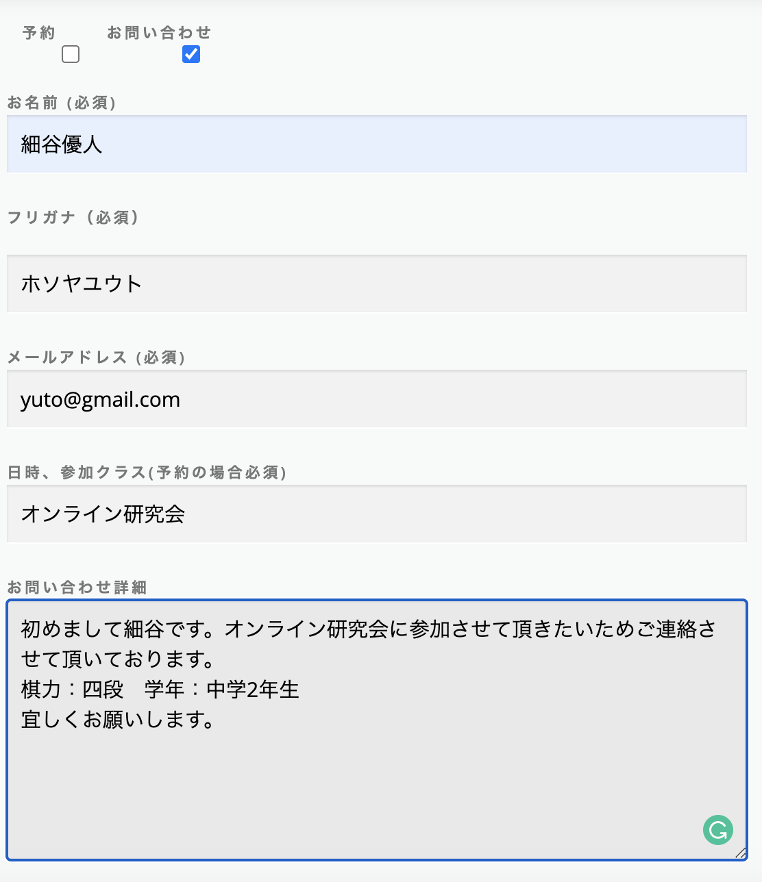 お申し込みボタンよりCONTACTに飛び、下記の例を参照にお申し込み下さい。