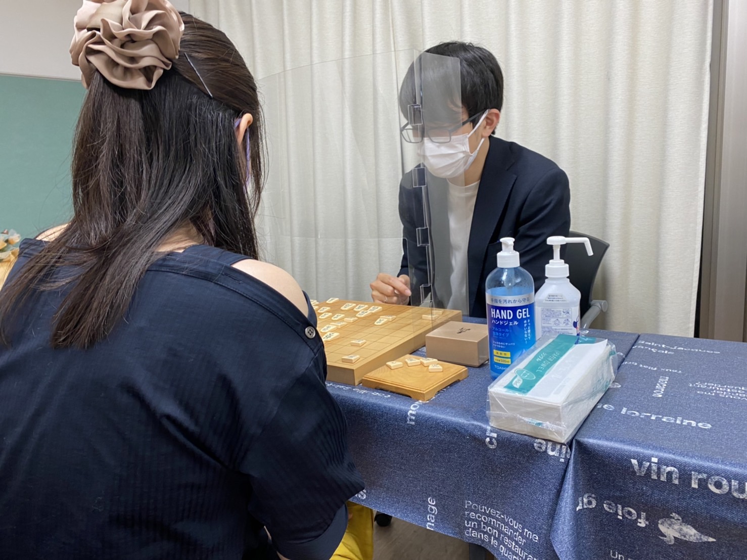 8枚落ちの生徒さんには、10枚落ち+太閤将棋(初心者用の指し方)を使ってスモールステップでの対局を。